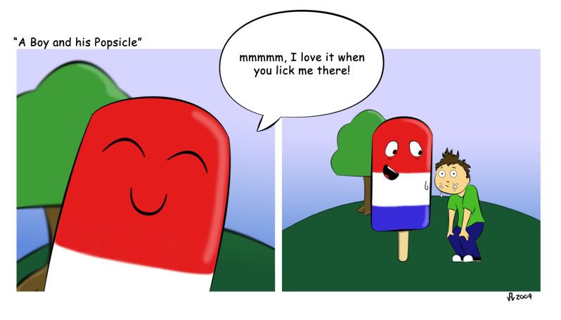 At 5/25/09 04:20 PM, Lundsfryd wrote:At 5/25/09 04:17 PM, Ravish261 wrote: something weird with a popsicleIt looks more like a piece of toas that is sweating. I think it needs a wooden stick up it's butt :P