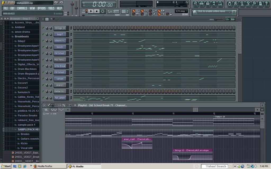 First, I gather all the samples I'm initially going to use. This is constantly changing, since I usually keep adding stuff as I go along. Before I start, I usually have an idea in my head, and so with that in mind, I assign all the samples to their mixer channels. I then begin the painstakingly tedious process of laying out my drums (painstaking because I make breakcore.). Once I get a general pattern down, I go through and apply any pitch shifts, filter sweeps, velocity changes, effect automations yadda yadda yadda.