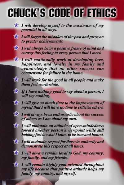 You lose 2000 IQ points and your life for not believing in the Chuck Norris "CODE OF ETHICS". Don't believe me? It's on the Offical Chuck Norris website. And your just jealos because you don't nhave your own action figure! CHUCK NORRIS IS GOD!(1)