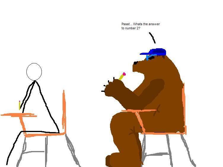 I hate it when the bear posing as a student tries to cheat off of me.